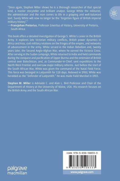 This book offers a detailed investigation of George S. White's career in the British Army. It explores late Victorian military conflicts, British power dynamics in Africa and Asia, civil-military relations on the fringes of the empire, and networks of advancement in the army. White served in the Indian Rebellion and, twenty years later, the Second Anglo-Afghan War, where he earned the Victoria Cross. After serving in the Sudan campaign, White returned to India and held commands during the conquest and pacification of Upper Burma and the extension of British control over Balochistan, and, as Commander-in-Chief, sent expeditions to the North-West Frontier and oversaw major military reforms. Just before the start of the South African War, White was given the command of the Natal Field Force. This force was besieged in Ladysmith for 118 days. Relieved in 1900, White was heralded as the "Defender of Ladysmith." He was made Field-Marshal in 1903.