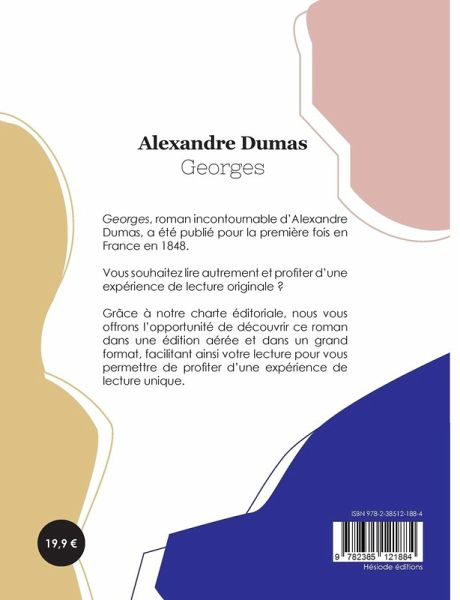 Georges, roman incontournable d'Alexandre Dumas, a été publié pour la première fois en France en 1848. Vous souhaitez lire autrement et profiter d¿une expérience de lecture originale ? Grâce à notre charte éditoriale, nous vous offrons l¿opportunité de découvrir cette nouvelle dans une édition aérée et dans un grand format, facilitant ainsi votre lecture pour vous permettre de profiter d¿une expérience de lecture unique.