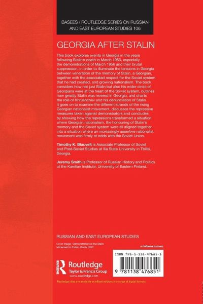 This book explores events in Georgia in the years following Stalin's death in March 1953, especially the demonstrations of March 1956 and their brutal suppression, in order to illuminate the tensions in Georgia between veneration of the memory of Stalin, a Georgian, together with the associated respect for the Soviet system that he had created, and growing nationalism. The book considers how not just Stalin but also his wider circle of Georgians were at the heart of the Soviet system, outlines how greatly Stalin was revered in Georgia, and charts the rise of Khrushchev and his denunciation of Stalin. It goes on to examine the different strands of the rising Georgian nationalist movements, discusses the repressive measures taken against demonstrators, and concludes by showing how the repressions transformed a situation where Georgian nationalism, the honouring of Stalin's memory and the Soviet system were all aligned together into a situation where an increasingly assertive nationalist movement was firmly at odds with the Soviet Union.