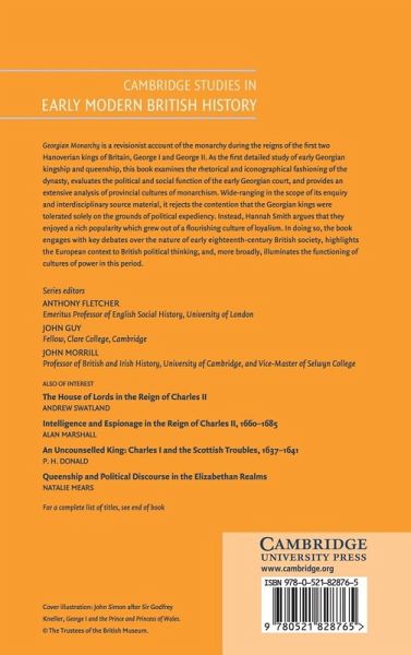 This book, first published in 2006, is a revisionist account of the monarchy during the reigns of the first two Hanoverian kings of Britain, George I and George II. This detailed study of early Georgian kingship and queenship examines the rhetorical and iconographical fashioning of the dynasty, evaluates the political and social function of the early Georgian court, and provides an extensive analysis of provincial cultures of monarchism. Wide-ranging in the scope of its enquiry and interdisciplinary source material, it rejects the contention that the Georgian kings were tolerated solely on the grounds of political expediency. Instead, Hannah Smith argues that they enjoyed a rich popularity that grew out of a flourishing culture of loyalism. In doing so, she engages with key debates over the nature of early eighteenth-century British society, highlights the European context to British political thinking, and, more broadly, illuminates the functioning of cultures of power in this period.