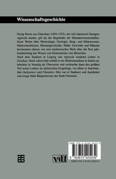 Georg Pawer aus Glauchau /1494 - 1555), der sich lateinsich Georgius Agricola nannte, gilt als der Begründer der Montanwissenschaften. Seine Werke über Mineralogie, Geologie, Berg- und Hüttenwesen, Markscheidekunst, Montangeschichte, Maße, Gewichte und Münzen bestimmen ebenso wie sein medizinisches Werk über die Pest jahrhundertelang das Wissen von Generationen von Menschen.