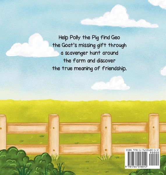 Help Polly the Pig find Geo the Goat's missing gift through a scavenger hunt around the farm and discover the true meaning of friendship. It tells the story of Polly the Pig as she searches the farm for her friend Geo the Goat's missing gift. While looking for Geo's gift, before the party, Polly asks the other animals for help, inadvertently exploring concepts of positional language such as up and down, left and right, near and far, and more. Beyond the learning aspect, the story emphasizes the theme of friendship, showing Polly that true value lies not in material possessions but in the importance of friendship itself.