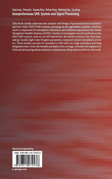 This book chiefly addresses the analysis and design of geosynchronous synthetic aperture radar (GEO SAR) systems, focusing on the algorithms, analysis, methods used to compensate for ionospheric influences, and validation experiments for Global Navigation Satellite Systems (GNSS). Further, it investigates special problems in the GEO SAR context, such as curved trajectories, the Earth's rotation, the 'non-stop-and-go' model, high-order Doppler parameters, temporal-variant ionospheric errors etc. These studies can also be extended to SAR with very high resolution and long integration time. Given the breadth and depth of its coverage, scientists and engineers in SAR and advanced graduate students in related areas will greatly benefit from this book.