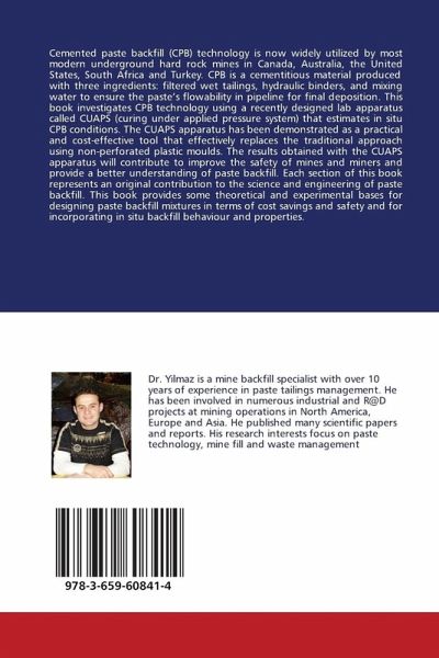 Cemented paste backfill (CPB) technology is now widely utilized by most modern underground hard rock mines in Canada, Australia, the United States, South Africa and Turkey. CPB is a cementitious material produced with three ingredients: filtered wet tailings, hydraulic binders, and mixing water to ensure the paste's flowability in pipeline for final deposition. This book investigates CPB technology using a recently designed lab apparatus called CUAPS (curing under applied pressure system) that estimates in situ CPB conditions. The CUAPS apparatus has been demonstrated as a practical and cost-effective tool that effectively replaces the traditional approach using non-perforated plastic moulds. The results obtained with the CUAPS apparatus will contribute to improve the safety of mines and miners and provide a better understanding of paste backfill. Each section of this book represents an original contribution to the science and engineering of paste backfill. This book provides some theoretical and experimental bases for designing paste backfill mixtures in terms of cost savings and safety and for incorporating in situ backfill behaviour and properties.