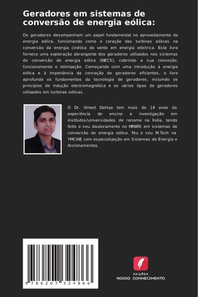Os geradores desempenham um papel fundamental no aproveitamento da energia eólica, funcionando como o coração das turbinas eólicas na conversão da energia cinética do vento em energia eléctrica. Este livro fornece uma exploração abrangente dos geradores utilizados nos sistemas de conversão de energia eólica (WECS), cobrindo a sua conceção, funcionamento e otimização. Começando com uma introdução à energia eólica e à importância da conceção de geradores eficientes, o livro aprofunda os fundamentos da tecnologia de geradores, incluindo os princípios de indução electromagnética e os vários tipos de geradores utilizados em turbinas eólicas.