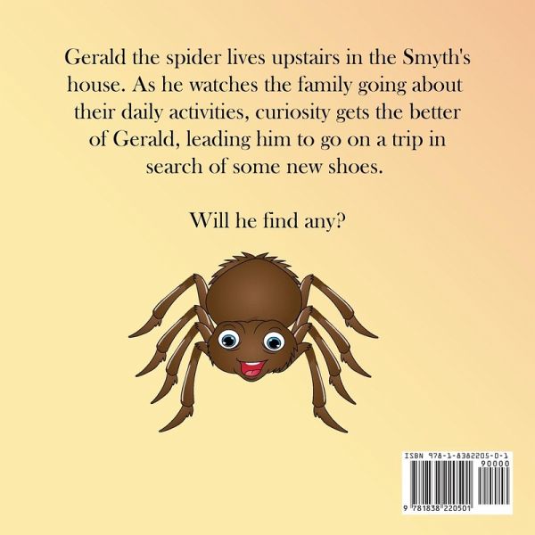 Gerald is the resident spider at the Smyth's house who develops a curiosity about shoes. This takes him on a shopping spree into town to look for some shoes of his own. However, having so many feet means buying shoes is not that straightforward! Gerald's New Shoes is a rhyming children's picture book. The colourful illustrations take the reader on the funny adventure of a spider trying to buy shoes. The rhymes within the book are ideal to keep children engaged and the length of the book makes it a perfect bedtime story. Ideal age category 2-6 years old, however suitable and entertaining for adults and children who love rhyming stories, friendly spiders or both!