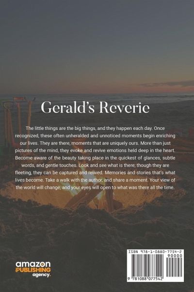 The little things are the big things, and they happen each day. Once recognized, these often unheralded and unnoticed moments begin enriching our lives. They are there, moments that are uniquely ours. More than just pictures of the mind, they evoke and revive emotions held deep in the heart. Become aware of the beauty taking place in the quickest of glances, subtle words, and gentle touches. Look and see what is there; though they are fleeting, they can be captured and relived. Memories and stories that's what lives become. Take a walk with the author, and share a moment. Your view of the world will change, and your eyes will open to what was there all the time.