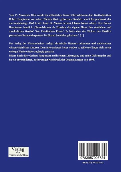 Dieses Buch über Gerhart Hauptmann stellt seinen Lebensgang und seine Dichtung dar und ist ein unveränderter, hochwertiger Nachdruck der Originalausgabe von 1898.