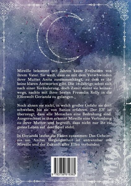 Mireille bekommt seit Jahren kaum Freiheiten von ihrem Vater. Sie weiß, dass es mit dem Verschwinden ihrer Mutter Anita zusammenhängt, zu dem er ihr keine klaren Antworten gibt. Die 18-Jährige sehnt sich nach einer Veränderung, doch damit meint sie keineswegs, nachts mit ihrer besten Freundin Kelly in die Elfenwelt Gerianda zu gelangen.Noch ahnen sie nicht, in welch großer Gefahr sie dort schweben, bis sie von Sanios erfahren. Der Elf ist überzeugt, dass alle Menschen eine Bedrohung sind. Ausgerechnet in ihm erkennt Mireille eine Verbindung zu ihrer Mutter und begreift, dass nicht nur ihr eigenes Leben auf dem Spiel steht. In Gerianda laufen alle Fäden zusammen: Das Geheimnis um Anitas Vergangenheit ist untrennbar mit Mireille und der Zukunft aller Elfen verbunden.