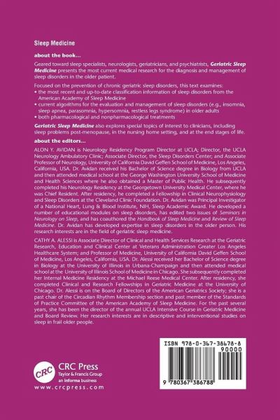 ALON Y. AVIDAN is Director, the Neurology Clinic; Associate Director, the Sleep Disorders Center; and Associate Professor of Neurology, University of California David Geffen School of Medicine, Los Angeles, California, USA. Dr. Avidan obtained his M.D. from George Washington University School of Medicine and Health Sciences, Washington, D.C., USA. He is Chair of the MEDSleep subcommittee of the American Academy of Sleep Medicine, and he is also a member of the American Medical Association, The William Beaumont Honor Medical Society, and the American Academy of Neurology. Dr. Avidan has been named on both the "Who's Who in Medical Sciences Education" and "Best Doctors in America" lists. He is Chair of the Resident Education Committee and director of the CME course, "Advances in Sleep Medicine: Practical Approaches in Primary Care" at the University of Michigan Medical Center, Ann Arbor, Michigan, USA. Dr. Avidan is a frequent editor and reviewer for several journals, including Annals of Neurology and the Journal of the American Geriatrics Society. CATHY A. ALESSI is Associate Director, Clinical and Health Services Research; Geriatric Research, Education and Clinical Center; Veterans Administration Greater Los Angeles Healthcare System, and Professor of Medicine, University of California David Geffen School of Medicine, Los Angeles, California, USA. Dr. Alessi received her M.D. from the University of Illinois College of Medicine, Chicago, Illinois, USA. Dr. Alessi is a member of several professional organizations in geriatric medicine, gerontology, and sleep medicine; she is on the Board of Directors of the American Geriatrics Society; she is a past chair of the Circadian Rhythm Membership section and past member of the Standards of Practice Committee of the American Academy of Sleep Medicine. For the past several years, she has been the director of the annual UCLA Intensive Course in Geriatric Medicine and Board Review. She has also been the recipient of n