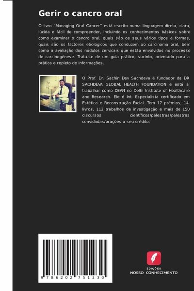 O livro "Managing Oral Cancer" está escrito numa linguagem direta, clara, lúcida e fácil de compreender, incluindo os conhecimentos básicos sobre como examinar o cancro oral, quais são os seus vários tipos e formas, quais são os factores etiológicos que conduzem ao carcinoma oral, bem como a avaliação dos nódulos cervicais que estão envolvidos no processo de carcinogénese. Trata-se de um guia prático, sucinto, orientado para a prática e repleto de informações.