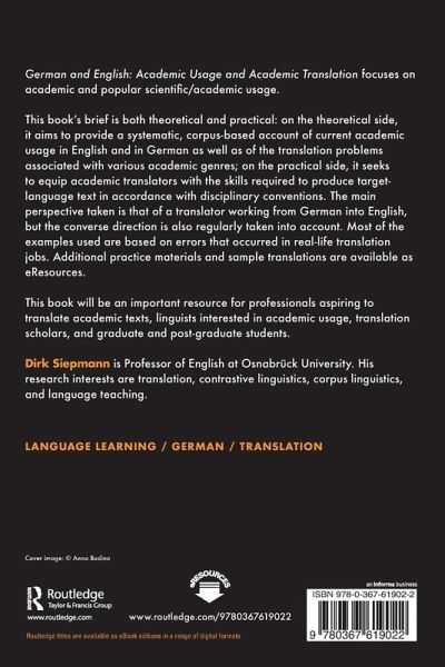 This book focuses on academic and popular scientific/academic usage. The main perspective taken is that of a translator working from German into English, but the converse direction is also regularly taken into account. Most of the examples used are based on errors which occurred in real-life translation jobs.