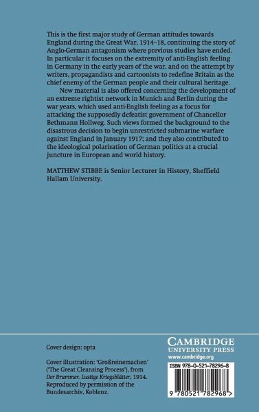 This is the first major study of German attitudes towsrds England during the Great War, 1914-18, continuing the story of Anglo-German antagonism where previous studies have ended. In particular it focuses on the extremity of anti-English feeling in Germany in the early years of the war, and on the attempt by writers, propagandists and cartoonists to redefine Britain as the chief enemy of the German people and their cultural heritage. New material is also offered concerning the development of an extreme rightist network in Munich and Berlin during the war years, which used anti-English feeling as a focus for attacking the supposedly defeatist government of Chancellor Bethmann-Hollweg. Such views formed the background to the disastrous decision to begin unrestricted submarine warfare against England in January 1917; and they also contributed to the ideological polarization of German politics at a crucial juncture in European and world history.