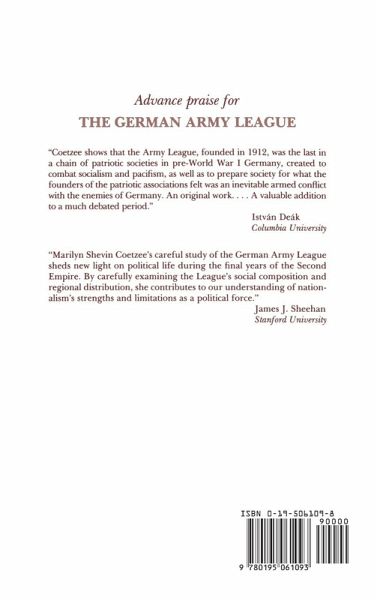 The German Army League was the last in a chain of patriotic societies created to combat socialism and pacifism in pre-World War I Germany. Founded in 1912, it was important in strengthening the resolve of those in Germany who wanted war, mostly as a panacea for the country's ills. In her in-depth study of this organization, the author addresses the questions hotly debated by German historians: to what de gree did the masses support Wilhelmine militarism? to what degree can the course of German history be described as a Sonderweg, a path distinct from that of other European countries?
