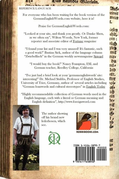 Have you ever come across a word you thought was German but weren't sure? Have you ever wondered about the meaning of a German word used in English? Are you a German American? Are you studying German? Then this book is for you. Here you will find hundreds of words that have come to English through German, including sometimes surprising and unexpected meanings and very many interesting and often humorous examples from books, magazines, comics, movies, TV, songs and the Internet. More info: http://www.robbsbooks.com/rknapp0e.htm
