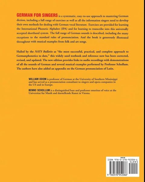 A classic in the field, hailed by the NATS Bulletin as "the most successful, practical, and complete approach to German phonetics to date," German for Singers remains an effective and authoritative guide to German diction for singers of every genre. This re-issue of the second, revised edition now offers more audio recordings with demonstrations of all the sounds of German and several musical examples performed by Professor Schollum.