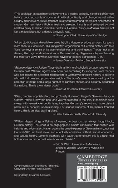 This history of German-speaking central Europe offers a very wide perspective, emphasizing a succession of many-layered communal identities. It highlights the interplay of individual, society, culture and political power, contrasting German with Western patterns. Rather than treating 'the Germans' as a collective whole whose national history amounts to a cumulative biography, the book presents the pre-modern era of the Holy Roman Empire; the nineteenth century; the 1914-45 era of war, dictatorship and genocide; and the Cold War and post-Cold War eras since 1945 as successive worlds of German life, thought and mentality. This book's 'Germany' is polycentric and multicultural, including the multinational Austrian Habsburg Empire and the German Jews. Its approach to National Socialism offers a conceptually new understanding of the Holocaust. The book's numerous illustrations reveal German self-presentations and styles of life, which often contrast with Western ideas of Germany.