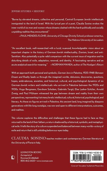 With an approach both personal and symbolic, this volume leads us through the imagined worlds, delusions, discoveries, questions, hopes, ambivalences, anxieties, and historical, cultural and psychological dynamics of six German-Jewish writers and intellectuals who arrived in Palestine between the 1920s and 1930s. Hugo Bergmann, Gershom Scholem, Gabriele Tergit, Else Lasker–Schüler, Arnold Zweig, and Paul Mühsam witnessed the gap between dream and reality from their own perspectives, representing it at many levels: intellectual, cultural, historical, psychological, and literary. As these six figures arrived in Palestine, this ancient land long imagined by diaspora generations with life-long nostalgia was new and open to different interpretations, outcomes, and realities. This book explores the difficulties and challenges that these figures had to face as they returned to the land of their fathers, a return shadowed by a historical, symbolic and metaphysical exile. It tells the story of a culture suspended and balanced between many worlds— a story of exile and return that is still unfolding under our eyes today.