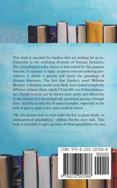 This book is intended for readers who are looking for an introduction to the confusing diversity of German literature. The chronological order chosen is best suited for this purpose because, in contrast to topic- or genre-oriented ordering procedures, it shows a genesis and traces the genealogy of German literature. The fact that Goethe's novel Wilhelm Meisters Lehrjahre would most likely have looked completely different without Hans Jakob Christoffel von Grimmelshausen's Simplicissimus can be shown most easily and effectively in the context of a chronologically presented journey through time. And this is only one of many examples, especially in the field of poetry quite a few more could be found. "He who knows how to read holds the key to great deeds, to undreamed-of possibilities," Aldous Huxley once said. This book is intended to open up some of these possibilities for you.
