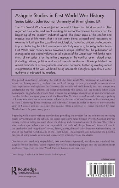 The period immediately following the end of the First World War witnessed an outpouring of artistic and literary creativity, as those that had lived through the war years sought to communicate their experiences and opinions. In Germany this manifested itself broadly into two camps, one condemning the war outright; the other condemning the defeat. Of the former, Erich Maria Remarque's All Quiet on the Western Front remains the archetypal example of an anti-war novel, and one that has become synonymous with the Great War. Yet the tremendous and enduring popularity of Remarque's work has to some extent eclipsed a plethora of other German anti-war writers, such as Hans Chlumberg, Ernst Johannsen and Adrienne Thomas. In order to provide a more rounded view of German anti-war literature, this volume offers a selection of essays published by Brian Murdoch over the past twenty years. Beginning with a newly written introduction, providing the context for the volume and surveying recent developments in the subject, the essays that follow range broadly over the German anti-war literary tradition, telling us much about the shifting and contested nature of the war. The volume also touches upon subjects such as responsibility, victimhood, the problem of historical hiatus in the production and reception of novels, drama, poetry, film and other literature written during the war, in the Weimar Republic, and in the Third Reich. The collection also underlines the potential dangers of using novels as historical sources even when they look like diaries. One essay was previously unpublished, two have been augmented, and three are translated into English for the first time. Taken together they offer a fascinating insight into the cultural memory and literary legacy of the First World War and German anti-war texts.