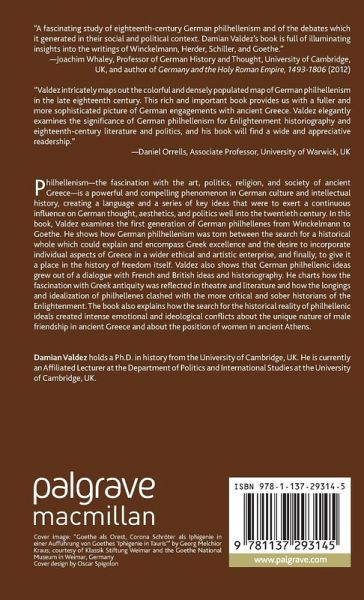 'A fascinating study of eighteenth-century German Philhellenism and of the debates which it generated in their social and political context. Damian Valdez's book is full of illuminating insights into the writings of Winckelmann, Herder, Schiller and Goethe.' - Joachim Whaley, Professor of German History and Thought at the University of Cambridge, UK, and author of Germany and the Holy Roman Empire, 1493-1806 (2012)