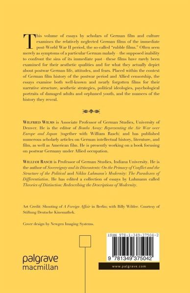 "In providing this new look, Wilms and Rasch have produced a very helpful complement to other recent work on the German 'Rubble Films'... The standard of contributions in this volume is consistently high." - Paul Cooke, University of Leeds
