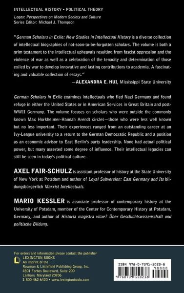 German Scholars in Exiledeals with intellectuals who fled Nazi Germany and found refuge in either the United States or in American Services in Great Britain and post-WWII Germany. The volume focuses on scholars who were outside the commonly known Max Horkheimer-Hannah Arendt circles, who are less well-known but not less important. Their experiences ranged from an outstanding career at an Ivy-League university to a return to the German Democratic Republic and a position as an economic advisor to East Berlin's party leadership. None had actual political power, but many asserted some degree of influence. Their intellecutal legacies can still be seen in today's political culture.