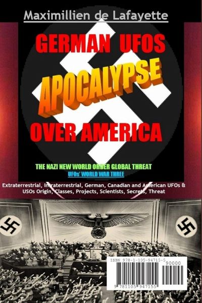 Extraterrestrial Intraterrestrial German Canadian & American UFOs: Origin Classes Projects Scientists Secrets. Part 2 from a set of 2 parts, (Approx. 500 pages containing over 250 photos. The book that will turn ufology upside down. Explosive! There is NO other book like it or even close. You thought you knew what UFOs are, their origins, the regimes, governments or aliens who built them, how UFOs, Nazism, Hitler, New World Order, World War Three, Apocalypse on Earth, American interests, intelligence agencies, United States Presidents, U.S.-UFOs world politics are all linked together? Well think again. Information about the darkest UFOs' deals and threats in mankind history, never, ever revealed before by any other author, or available elsewhere, in books, in forums, on websites, on the Internet or in any published work, since 1917 to the present. Published by UFOs & Supernatural magazine (www.ufossupernaturalmagazine.com) Author's website: www.maximilliendelafayettebibliography.com