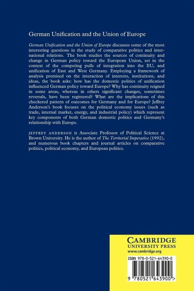 German Unification and the Union of Europe discusses some of the most interesting questions in the study of comparative politics and international relations. The book studies the sources of continuity and change in German policy toward the European Union, set in the context of the competing pulls of integration into the EU, and unification of East and West Germany. Employing a framework of analysis premised on the interaction of interests, institutions and ideas, the book asks: how has the domestic politics of unification influenced German policy toward Europe? Why has continuity reigned in some areas, whereas in others significant changes, sometimes reversals, have been registered? What are the implications of this checkered pattern of outcomes for Germany and for Europe? Jeffrey Anderson's book focusses on the political economy issues (such as trade, internal market, energy, and industrial policy) which represent key components of both German domestic politics and Germany's relationship with Europe. Awarded the DAAD 2000 Prize for Distinguished Scholarship in German Studies: Politics and Foreign Policy.