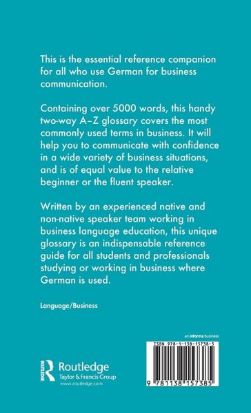 An essential reference companion to all those who use German for business communication. Containing over 5,000 words, this handy two-way A-Z glossary covers the most commonly used terms in business.