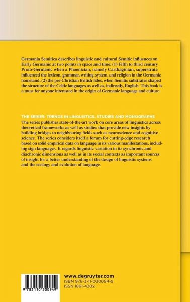 Germania Semitica explores prehistoric language contact in general, and attempts to identify the languages involved in shaping Germanic in particular. The book deals with a topic outside the scope of other disciplines concerned with prehistory, such as archaeology and genetics, drawing its conclusions from the linguistic evidence alone, relying on language typology and areal probability. The data for reconstruction comes from Germanic syntax, phonology, etymology, religious loan names, and the writing system, more precisely from word order, syntactic constructions, word formation, irregularities in phonological form, lexical peculiarities, and the structure and rules of the Germanic runic alphabet. It is demonstrated that common descent is neither a necessary nor a sufficient condition for reconstruction. Instead, lexical and structural parallels between Germanic and Semitic languages are explored and interpreted in the framework of modern language contact theory.