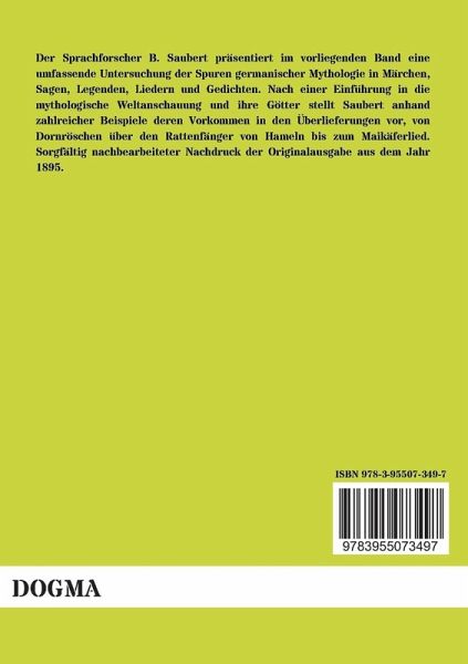 Der Sprachforscher B. Saubert präsentiert im vorliegenden Band eine umfassende Untersuchung der Spuren germanischer Mythologie in Märchen, Sagen, Legenden, Liedern und Gedichten. Nach einer Einführung in die mythologische Weltanschauung und ihre Götter stellt Saubert anhand zahlreicher Beispiele deren Vorkommen in den Überlieferungen vor, von Dornröschen über den Rattenfänger von Hameln bis zum Maikäferlied. Sorgfältig nachbearbeiteter Nachdruck der Originalausgabe aus dem Jahr 1895.