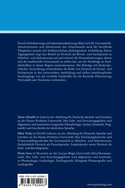 Durch Globalisierung und Internationalisierung öffnet sich für Germanistik-Absolventinnen und Absolventen der Arbeitsmarkt auch für berufliche Tätigkeiten jenseits der herkömmlichen philologischen Ausbildung. Dieser Tagungsband zeigt den Bedarf an Deutsch als Berufs- und Fachsprache in Mittelost- und Südosteuropa auf und erörtert die Herausforderungen, denen sich die traditionelle Germanistik zu stellen hat, um der Nachfrage an Fachlehrkräften in dieser Region nachzukommen. Die Beiträge mit länderspezifischer Ausrichtung verdeutlichen die Rolle von Deutsch als Fremd- und Fachsprache in der universitären Ausbildung und stellen interdisziplinäre Studiengänge vor, die verstärkt Fachkräfte für die Bereiche Übersetzung, Wirtschaft oder Tourismus vorbereiten.