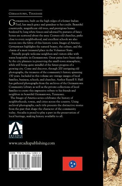 Germantown, built on the high ridges of a former Indian Trail, has much grace and grandeur to her credit. Beautiful countryside, magnificent old trees, and prestigious homes bordered by long white fences and adorned by pastures of fancy horses are scattered about the area. Century-old churches, parks close to every neighborhood, and excellent schools are also woven into the fabric of this historic town. Images of America: Germantown highlights the natural beauty, the culture, and the charm of a most treasured place in the Volunteer State. Friendly people welcome neighbors and visitors alike with warm hospitality in Germantown. Great pains have been taken by the city planners in preserving the small-town atmosphere, while still being quite mindful of the future progress of a growing city. Come and discover, through 200 intriguing old photographs, the treasures of the community's history spanning 150 years. Included in this volume are vintage images of local families, business, schools, and churches.