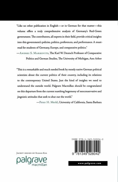 "Like no other publication in English - or in German for that matter - this volume offers a truly comprehensive analysis of Germany's Red-Green government. The contributors, all experts in their field, provide critical insights into this government's policies, politics, preferences, and performance. A must read for students of Germany, Europe, and comparative politics." - Andrei S. Markovits, The Karl W. Deutsch Professor of Comparative Politics and German Studies, The University of Michigan, Ann Arbor
