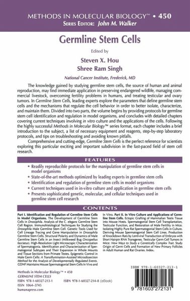 "This book provides background information and protocols for identifying, isolating, characterizing, and manipulating ... germline stem cells. ... This book is written for basic science and clinical researchers ... as well as those interested in development and reproductive biology. Biomedical scientists and clinicians ... will also appreciate the wealth of new information. ... This is an outstanding contribution to the literature in germ cell biology. ... will be valued by all those interested in development of the germ lineage and stem cell biology." (Bruce A. Fenderson, Doody's Review Service, October, 2008)
