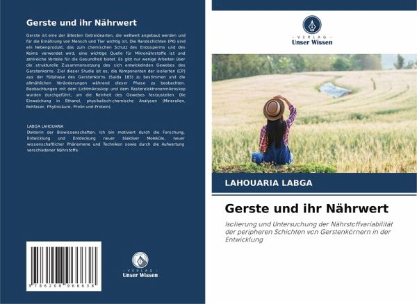Gerste ist eine der ältesten Getreidearten, die weltweit angebaut werden und für die Ernährung von Mensch und Tier wichtig ist. Die Randschichten (PK) sind ein Nebenprodukt, das zum chemischen Schutz des Endosperms und des Keims verwendet wird, eine wichtige Quelle für Mikronährstoffe ist und zahlreiche Vorteile für die Gesundheit bietet. Es gibt nur wenige Arbeiten über die strukturelle Zusammensetzung des sich entwickelnden Gewebes des Gerstenkorns. Ziel dieser Studie ist es, die Komponenten der isolierten (CP) aus der Füllphase des Gerstenkorns (Saida 183) zu bestimmen und die allmählichen Veränderungen während dieser Phase zu beobachten. Beobachtungen mit dem Lichtmikroskop und dem Rasterelektronenmikroskop wurden durchgeführt, um die Reinheit des Gewebes festzustellen. Die Einweichung in Ethanol, physikalisch-chemische Analysen (Mineralien, Rohfaser, Phytinsäure, Prolin und Protein).