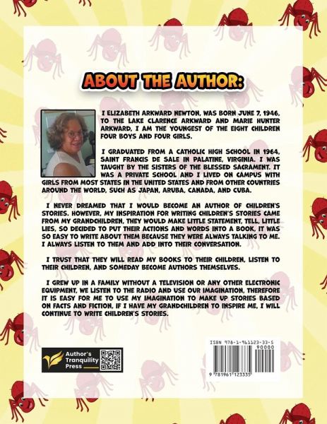 I Elizabeth Arkward newton, was born June 7, 1946, to the Lake Clarence Arkward and Marie Hunter Arkward, I am the youngest of the eight children four boys and four girls. I graduated from a Catholic High School in 1964, Saint Francis de Sale in Palatine, Virginia. I was taught by the sisters of the blessed sacrament. It was a private school and I lived on campus with girls from most states in the United States and from other countries around the world, such as Japan, Aruba, Canada, and Cuba. I never dreamed that I would become an author of children's stories. However, my inspiration for writing children's stories came from my grandchildren, they would make little statements, and tell little lies, so decided to put their actions and words into a book, it was so easy to write about them because they were always talking to me. I always listen to them and add into their conversation. I trust that they will read my books to their children, listen to their children, and someday become authors themselves. I grew up in a family without a television or any other electronic equipment, we listen to the radio and use our imagination, therefore it is easy for me to use my imagination to make up stories based on facts and fiction, if I have my grandchildren to inspire me, I will continue to write children's stories.