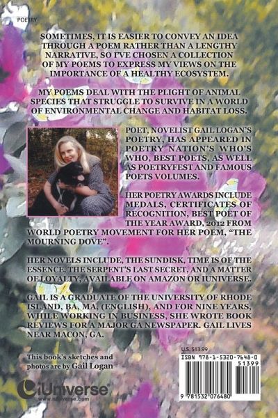 SOMETIMES, IT IS EASIER TO CONVEY AN IDEA THROUGH A POEM RATHER THAN A LENGTHY NARRATIVE, SO I'VE CHOSEN A COLLECTION OF MY POEMS TO EXPRESS MY VIEWS ON THE IMPORTANCE OF A HEALTHY ECOSYSTEM. MY POEMS DEAL WITH THE PLIGHT OF ANIMAL SPECIES THAT STRUGGLE TO SURVIVE IN A WORLD OF ENVIRONMENTAL CHANGE AND HABITAT LOSS.