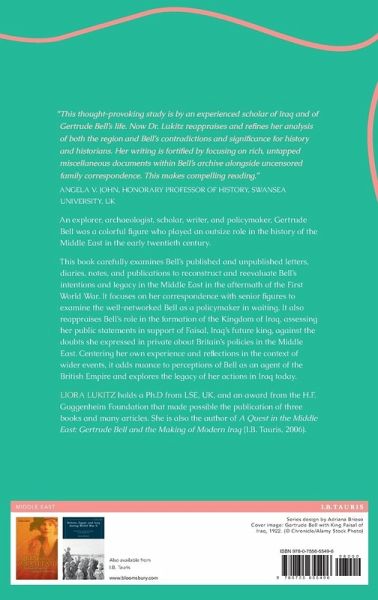 An explorer, archaeologist, scholar, writer, and policymaker, Gertude Bell was a colourful figure who played an outsize role in the history of the Middle East in the early twentieth century. This book carefully examines Bell's published and unpublished letters, diaries, notes, and publications to reconstruct and reevaluate Bell's intentions and legacy in the Middle East in the aftermath of the First World War. It focuses on her correspondence with senior figures to examine the well-networked Bell as a policymaker in waiting. It also reappraises Bell's role in the formation of the Kingdom of Iraq, assessing her public statements in support of Faisal, Iraq's future king, against the doubts she expressed in private. Centering her own experience and reflections in the context of wider events, it adds nuance to perceptions of Bell as an agent of the British Empire and explores the legacy of her actions in Iraq today.
