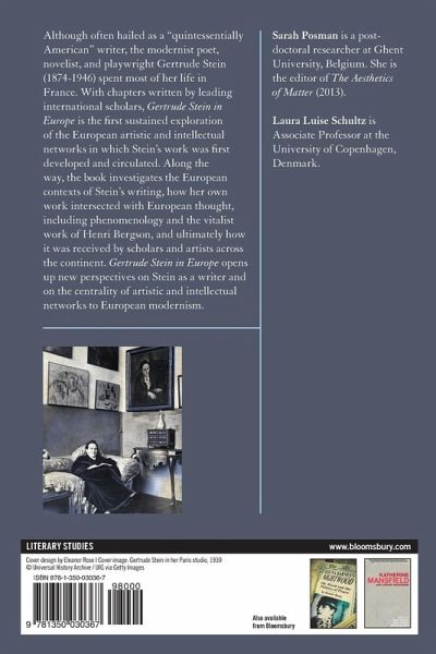 Although often hailed as a 'quintessentially American' writer, the modernist poet, novelist and playwright Gertrude Stein (1874-1946) spent most of her life in France. With chapters written by leading international scholars, Gertrude Stein in Europe is the first sustained exploration of the European artistic and intellectual networks in which Stein's work was first developed and circulated. Along the way, the book investigates the European contexts of Stein's writing, how her own work intersected with European thought, including phenomenology and the vitalist work of Henri Bergson, and ultimately how it was received by scholars and artists across the continent. Gertrude Stein in Europe opens up new perspectives on Stein as a writer and on the centrality of artistic and intellectual networks to European modernism.