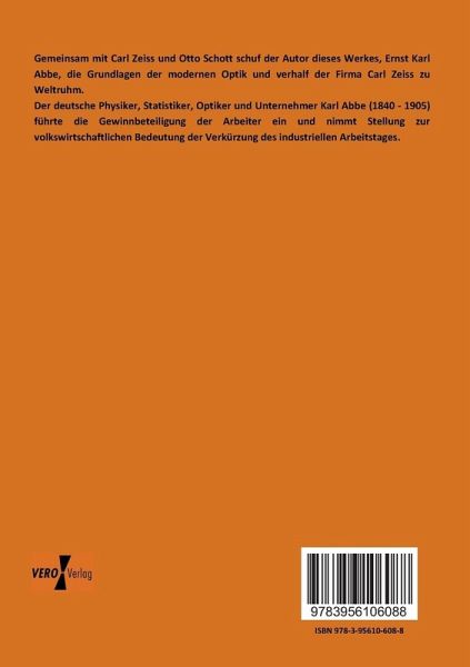 Gemeinsam mit Carl Zeiss und Otto Schott schuf der Autor dieses Werkes, Ernst Karl Abbe, die Grundlagen der modernen Optik und verhalf der Firma Carl Zeiss zu Weltruhm.