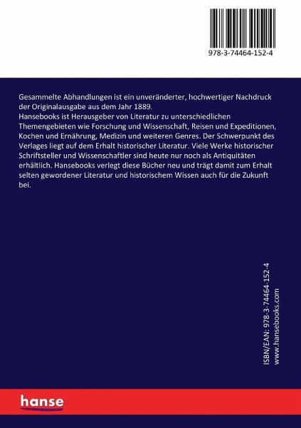 Gesammelte Abhandlungen ist ein unveränderter, hochwertiger Nachdruck der Originalausgabe aus dem Jahr 1889.