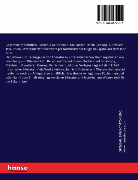 Gesammelte Schriften - Reisen, zweiter Band: Die Südsee-Inseln (Schluß), Australien, Java ist ein unveränderter, hochwertiger Nachdruck der Originalausgabe aus dem Jahr 1872.
