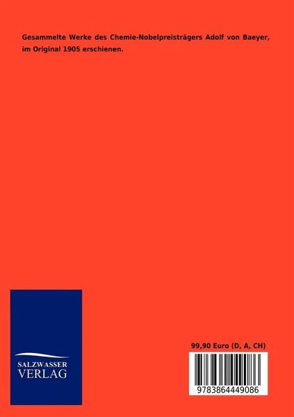 Gesammelte Werke des Chemie-Nobelpreisträgers Adolf von Baeyer, im Original 1905 erschienen.