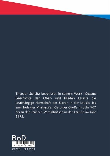 Theodor Scheltz beschreibt in seinem Werk "Gesamt Geschichte der Ober- und Nieder-Lausitz die unabhängige Herrschaft der Slaven in der Lausitz bis zum Tode des Markgrafen Gero der Große im Jahr 967 bis zu den inneren Verhältnissen in der Lausitz im Jahr 1373.