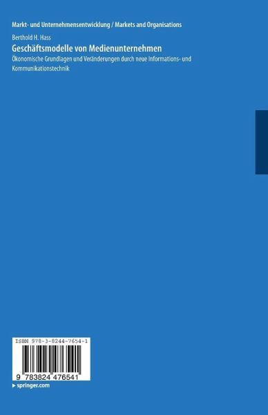 Berthold H. Hass operationalisiert das häufig benutzte, aber selten präzisierte Konstrukt des Geschäftsmodells im Hinblick auf Medienunternehmen und analysiert auf dieser Basis die Veränderungen in der Medienwirtschaft. Seine eingehende Untersuchung verdeutlicht die zahlreichen Stellhebel für die Veränderung und Weiterentwicklung der Geschäftslandschaft im Mediensektor. Die fundierte Analyse der Spezifika von Medienprodukten bildet die Grundlage für dieerfolgreiche Gestaltung von Geschäftsmodellen.