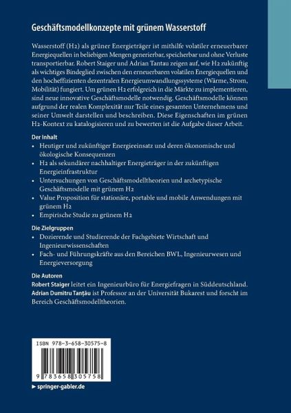 Wasserstoff (H2) als grüner Energieträger ist mithilfe volatiler erneuerbarer Energiequellen in beliebigen Mengen generierbar, speicherbar und ohne Verluste transportierbar. Robert Staiger und Adrian Tantau zeigen auf, wie H2 zukünftig als wichtiges Bindeglied zwischen den erneuerbaren volatilen Energiequellen und den hocheffizienten dezentralen Energieumwandlungssysteme (Wärme, Strom, Mobilität) fungiert. Um grünen H2 erfolgreich in die Märkte zu implementieren, sind neue innovative Geschäftsmodelle notwendig. Geschäftsmodelle können aufgrund der realen Komplexität nur Teile eines gesamten Unternehmens und seiner Umwelt darstellen und beschreiben. Diese Eigenschaften im grünen H2-Kontext zu katalogisieren und zu bewerten ist die Aufgabe dieser Arbeit.