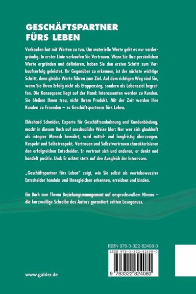 Ekkehard Schmider, Experte für Geschäftsanbahnung und Kundenbindung, macht in diesem Buch auf anschauliche Weise klar: Nur wer sich gelaubhaft als integrer Mensch bewährt, wird mittel- und langfristig überzeugen. Respekt und Selbstrespekt, Vertrauen und Selbstvertrauen charakterisieren den erfolgreichen Entscheider. Er vertraut sich und anderen, er denkt und handelt positiv. Und: Er achtet stets auf den Ausgleich der Interessen.