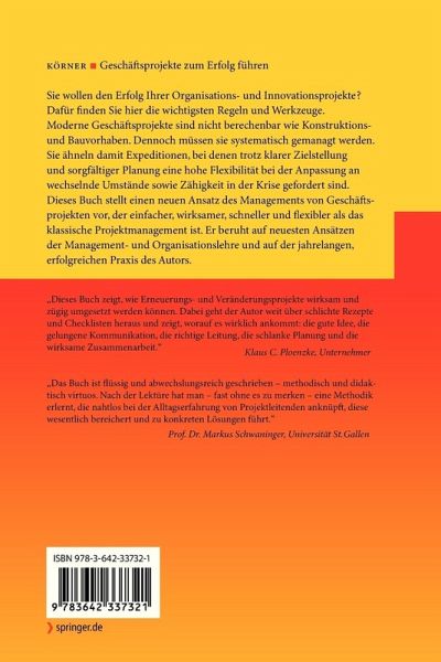 "Es sind vier Besonderheiten, die dieses Buch aus der Fülle von Publikationen zum Thema Projektmanagement hervorheben und unbedingt lesenswert machen: Erstens, die Einbettungvon Projekten in den größeren unternehmerischen Kontext ... Zweitens, die Durchführung von Projekten als Expedition in unbekanntes Gelände. ... Drittens, die besondere Rolle des Projektleiters. ... Viertens, das Buch ist in einer Sprache geschrieben, die einerseits jeder versteht, die aber gleichzeitig so locker und erzählerisch ist, dass es Spaß macht darin zu lesen ... absolut empfehlenswert." (in: OrganisationsEntwicklung, 2009, Issue 4, S. 100)